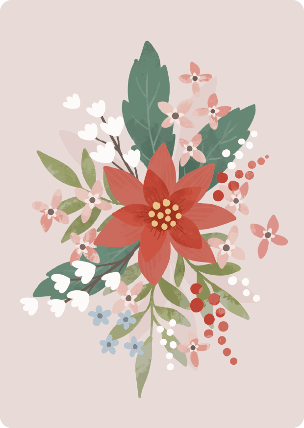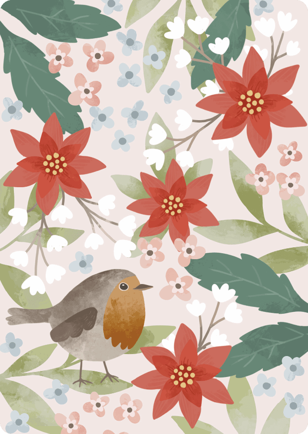 Tämän vuoden joulukorttimalleissa yhdistyy raikas punainen vaalean hempeisiin sävyihin.