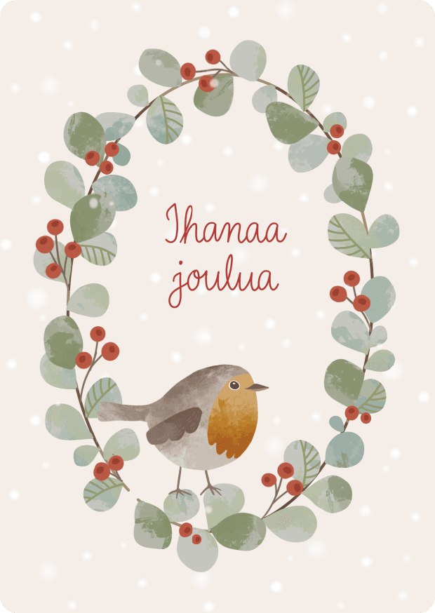 Joulukortti Robin kranssi