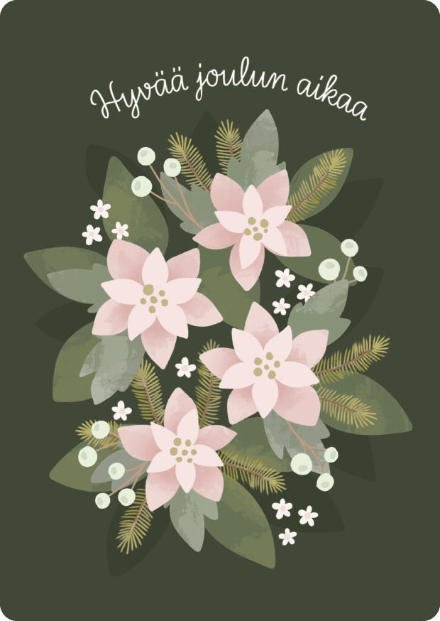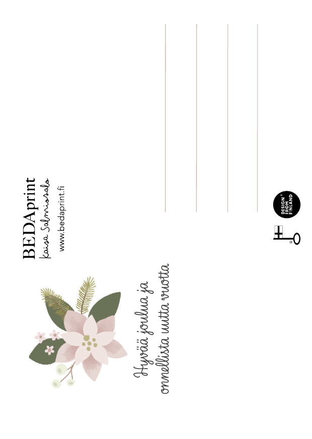Kortin kääntöpuolella teksti Hyvää joulua ja onnellista uutta vuotta
