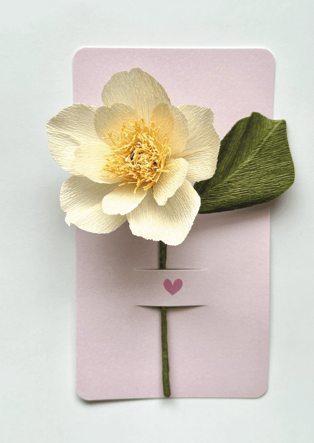Kreppipaperikukkakortti Luonnonvaalea